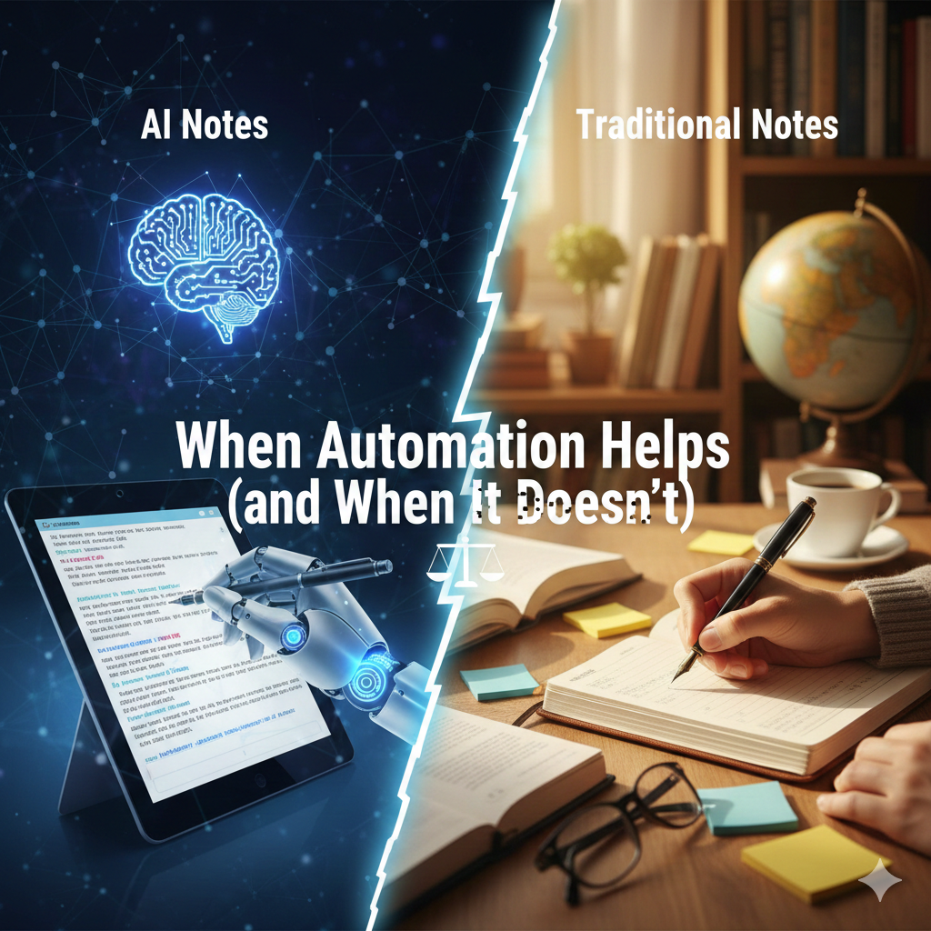 AI notes and traditional notes are not rivals—they’re tools for different jobs. Automation excels at capture and organization; manual notes protect understanding and judgment. When you choose intentionally—or combine both—you get speed without sacrificing clarity. That balance is where AI note-taking truly adds value.